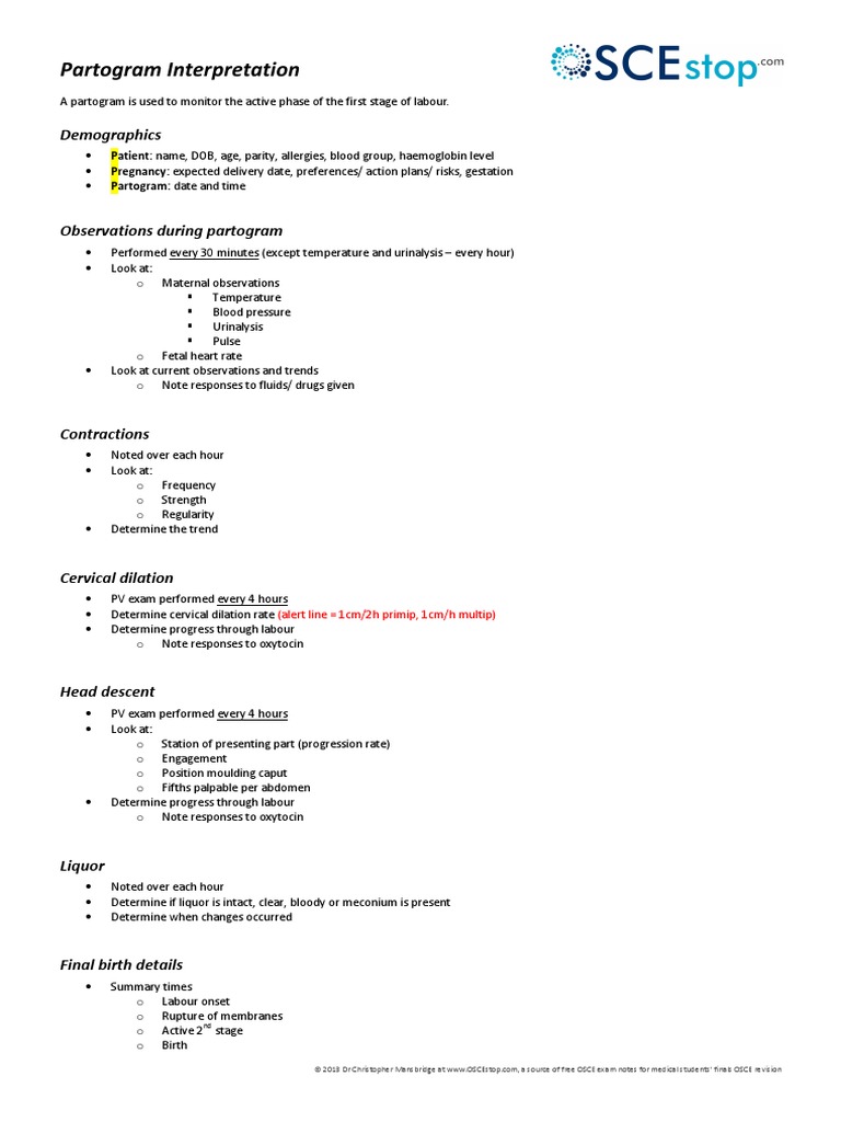 April 2012 Page 6 Notes On Medicine Surgery, Start studying interpretation of a partogram. Clinical interpretation of ctg has been discussed in this video. The osce is carefully structured to include parts from all elements of the curriculum as well as a wide range of skills. Relevant measurements might include statistics such as cervical dilation, fetal heart rate, duration of labour and vital signs. Easy way to understand partogram. A partogram or partograph is a composite graphical record of key data (maternal and fetal) during labour entered against time on a single sheet of paper. Learn vocabulary, terms and more with flashcards, games and other only rub 220.84/month. Partogram partogram is a graphical information about the progress of labour in which the 5. 2013 dr christopher mansbridge at www.oscestop.com, a source of free osce exam notes for. Unauthorised reproduction of any osce notes or other content from oscestop is. All osce notes and osce examinations are downloadable for medicine osce exam finals all rights reserved. Know about the best tips, tricks, and strategies to ace demonstration of the mechanism of normal labor with a model. The partogram is a record of care, which constitutes a legal document but is also an avenue for identifying accountability in clinical practice. Partogram is a managerial tool used to record all observations made on a woman and fetus in. Instructions are carefully written to ensure that the candidate is given a very specific.